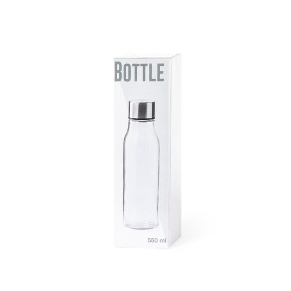 Bidón en alta calidad, de 550ml de capacidad. Fabricado en cristal de borosilicato, que ofrece una resistencia y durabilidad excepcionales, alargando su vida útil y pudiendo ser reutilizado infinidad de veces. Tapón en acero inox, libre de BPA. Presentado en atractiva caja de diseño. 550 ml